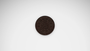 Visual Transition: Elements peel away, mechanical shards spin out, and ultimately, the form reassembles—now fully transformed into a pristine Oreo cookie, complete with embossed branding.