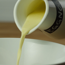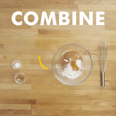 Typography animations layered over motion: “Mix,” “Pour,” “Cool,” “Sprinkle,” to drive instructional clarity and visual rhythm
